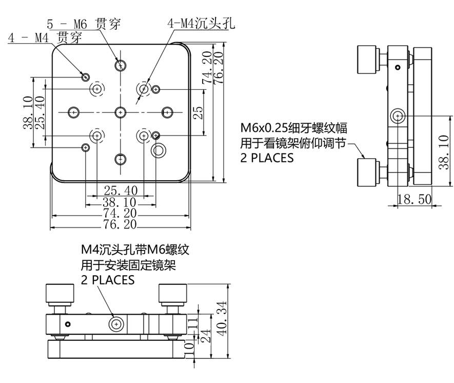 • 台面M4*4个/M6*5个/M4沉头孔*4个/M4沉头带M6螺纹孔