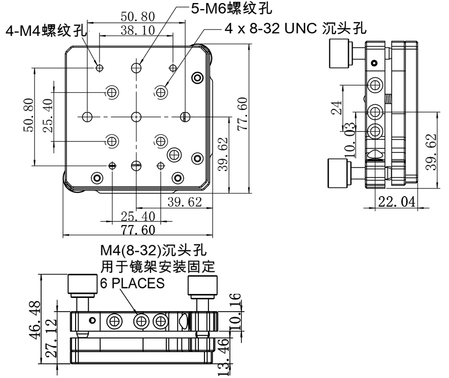 • 台面M4*4个/M6*5个/8-32沉头孔*4个